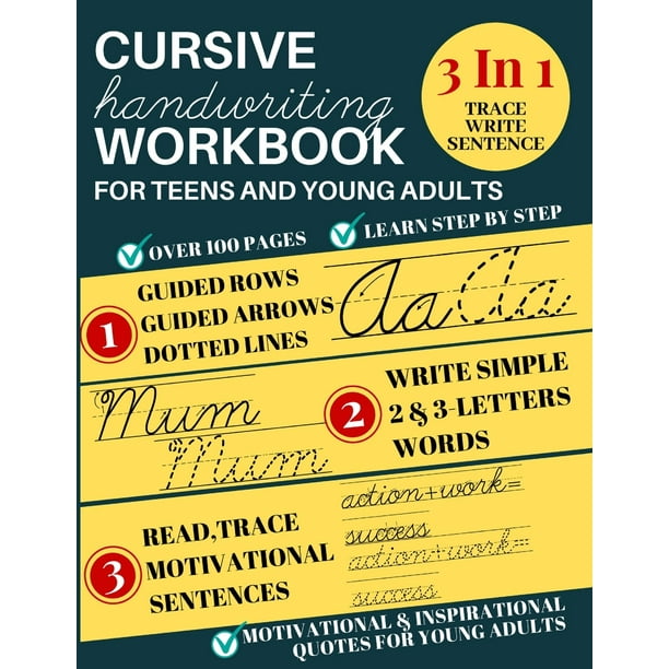 On the other hand, writing books for older kids (or even adults!) tend to have a smaller font size and more complex activities handwriting books for adults. A cursive writing practice workbook for young adults and teens (beginning cursive workbooks) sujatha lalgudi.